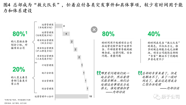 由于授權(quán)不充分或者下屬項(xiàng)目公司能力參差不齊,一些總部的運(yùn)營(yíng)管理部門淪為“救火隊(duì)長(zhǎng)”,幾乎一半的時(shí)間忙著應(yīng)付各類突發(fā)事件和具體事項(xiàng),不僅壓力大,而且臨陣磨槍有時(shí)未必見(jiàn)效(見(jiàn)圖4)。