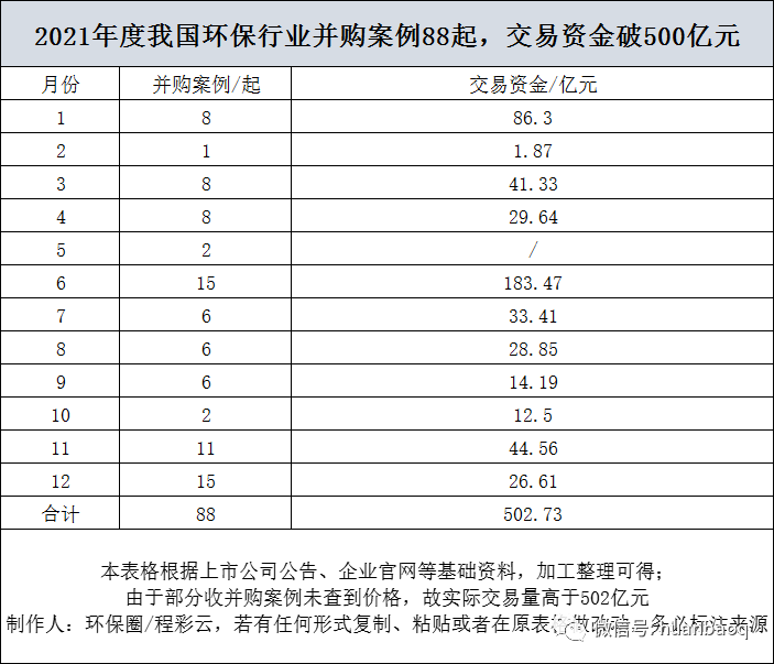 2021年環(huán)保行業(yè)并購規(guī)模突破500億元,創(chuàng)歷年之最!