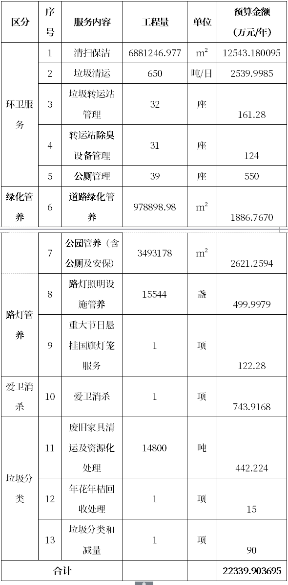 服務范圍:覆蓋平湖街道整個轄區(qū),服務范圍主要包括平湖街道轄區(qū)內(nèi)的市政清掃保潔、垃圾清運、垃圾轉(zhuǎn)運站管理、轉(zhuǎn)運站除臭管理、公廁管理、綠化管養(yǎng)、公園管養(yǎng)、路燈照明設施管養(yǎng)、重大節(jié)日懸掛國旗燈籠服務、愛衛(wèi)消殺、廢舊家具收集清運及資源化處理、年花年桔回收處理、垃圾分類和減量等。