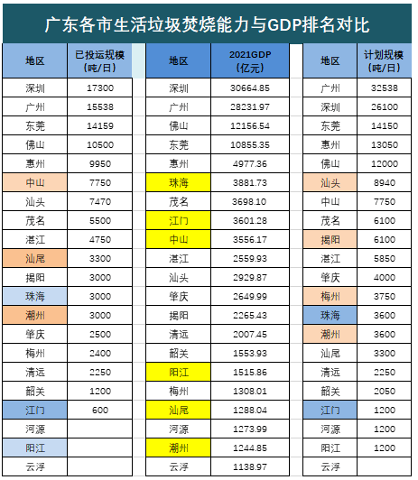 【附】廣東省垃圾焚燒項目統(tǒng)計表