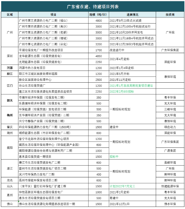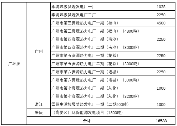 49350噸/日項目在建、待建,廣環(huán)投、深能環(huán)保領(lǐng)跑