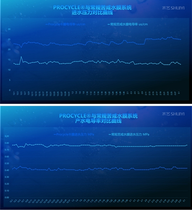 當然,實踐出真知。目前,水藝膜這款新品已經(jīng)成功應(yīng)用印染廢水及造紙廢水的中水回用項目,分別對傳統(tǒng)苦咸水膜以及進口反滲透膜原件進行了替換,記錄下來的對比數(shù)據(jù)相當驚艷。
