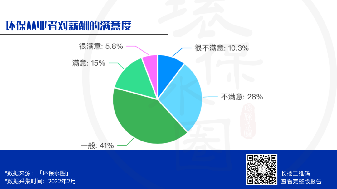雖然相對(duì)于其他行業(yè),環(huán)保行業(yè)的整體收入偏低,但此次調(diào)研可以看出環(huán)保人對(duì)自己的工作現(xiàn)狀都比較客觀,沒有抱很大的負(fù)面情緒,約61.7%的從業(yè)者對(duì)當(dāng)前薪資的態(tài)度為一般、滿意。