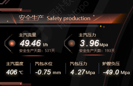 2D 面板實時更新余熱鍋爐蒸汽壓力,蒸汽溫度、給水溫度、鍋爐排污率、蒸汽蒸發(fā)量、本體阻力。
