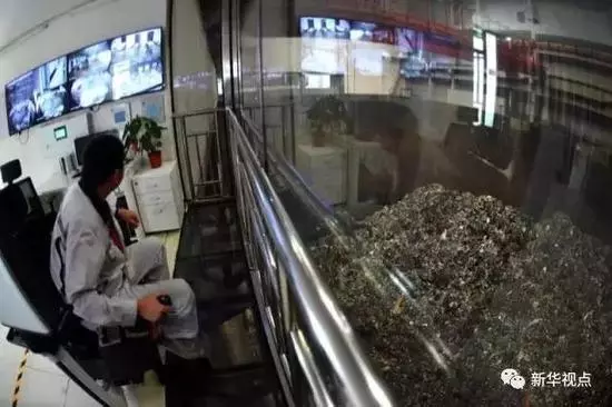 朝陽清潔焚燒中心,工人在抓取垃圾焚燒。新華社記者  鞠煥宗 攝