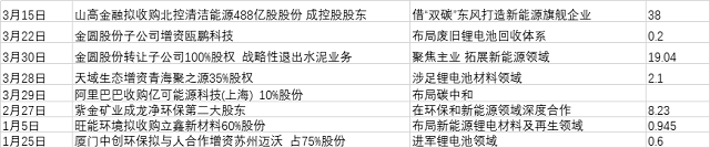 如山高金融擬控股北控清潔能源,就是意欲借“雙碳”東風(fēng)打造新能源旗艦企業(yè);紫金礦業(yè)成龍凈環(huán)保第二大股東,也是想優(yōu)勢(shì)互補(bǔ),在環(huán)保和新能源領(lǐng)域進(jìn)行深度合作;其他如垃圾焚燒領(lǐng)先企業(yè)旺能環(huán)境、國(guó)內(nèi)除塵領(lǐng)域龍頭中創(chuàng)環(huán)保、生態(tài)環(huán)境綜合治理企業(yè)天域生態(tài)以及環(huán)保建材企業(yè)金圓股份,主要都是想以并購(gòu)的方式涉入新能源鋰電材料及再生領(lǐng)域。