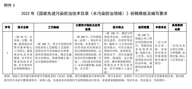 3.2022年《國(guó)家先進(jìn)污染防治技術(shù)目錄(水污染防治領(lǐng)域)》初稿模板及編寫要求