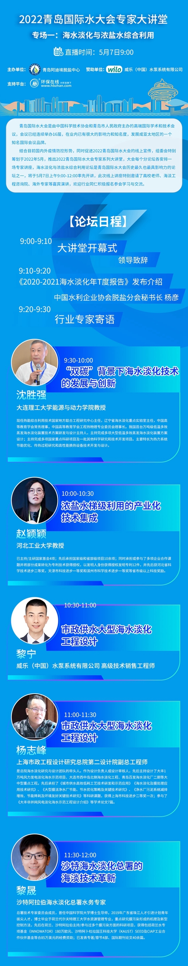 2022年,為了響應疫情防控要求的同時推進業(yè)界交流,組委會特攜手環(huán)保在線推出“2022青島國際水大會專家系列大講堂”線上活動,海水淡化與濃鹽水綜合利用專場作為開門一炮,可是不簡單。