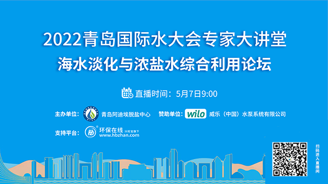 5月7日 9:00 專場一:論壇開幕式暨海水淡化與濃鹽水綜合利用(已結束)