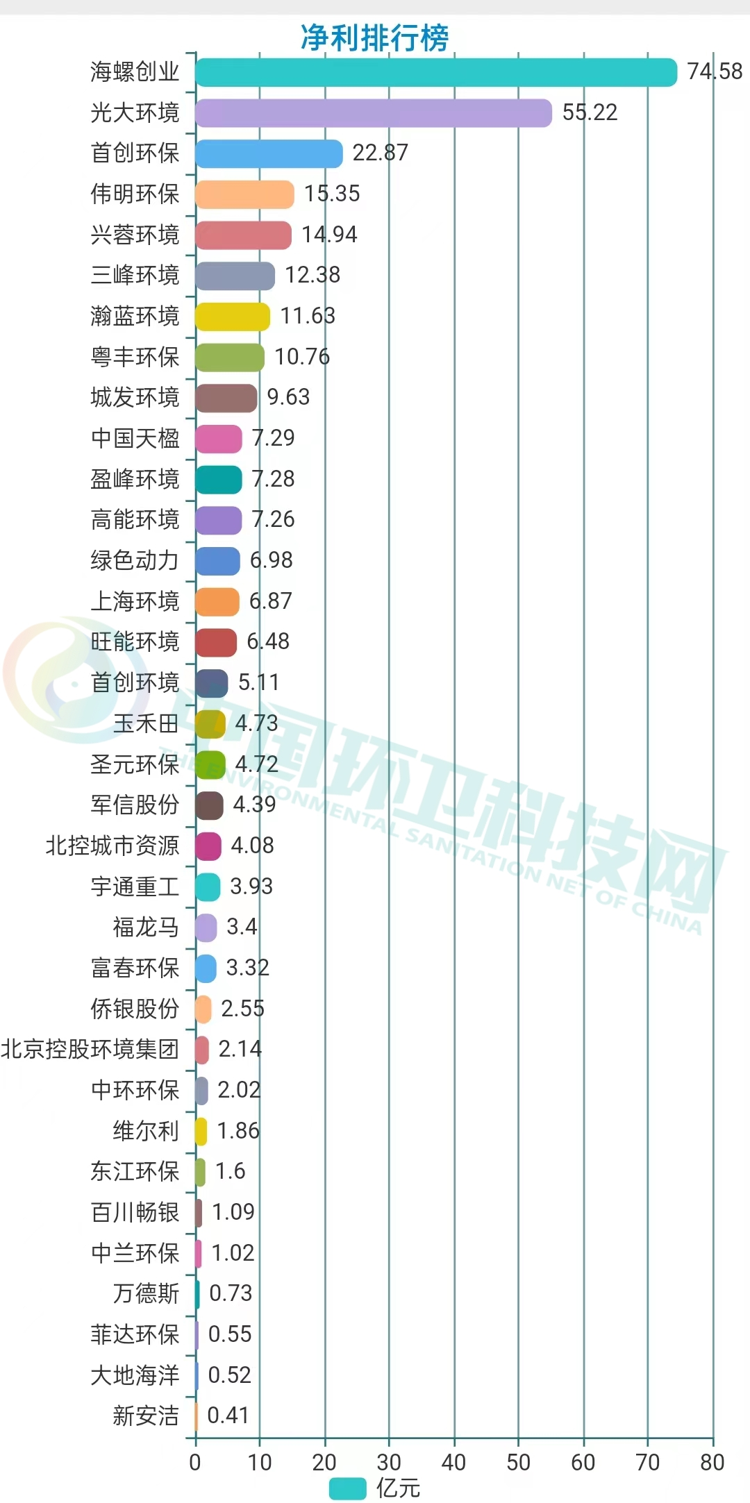 工程建設(shè)方面,建成投運(yùn)項(xiàng)目91個(gè),建成完工項(xiàng)目8個(gè);新開(kāi)工項(xiàng)目51個(gè),完工并交付的環(huán)境修復(fù)服務(wù)6個(gè)、垃圾分類(lèi)服務(wù)1個(gè)、EMC項(xiàng)目4個(gè)以及EPC項(xiàng)目9個(gè)。2021年,光大環(huán)境累計(jì)處理生活垃圾43,452,000噸,處理危廢及固廢269,000噸,提供綠色電力22,271,602,000千瓦時(shí),可供18,559,000個(gè)家庭一年使用,相當(dāng)于節(jié)約標(biāo)煤8,909,000噸,減少二氧化碳排放20,211,000噸。同期處理污水1,698,710,000立方米,處理垃圾發(fā)電廠滲濾液9,635,000立方米,減少COD排放740,000噸。在凈利榜中,海螺創(chuàng)業(yè)以74.58億元的歸母凈利潤(rùn)雄踞榜首。海螺創(chuàng)業(yè),2013年12月在香港聯(lián)合交易所主板上市(股票代碼:00586.HK),是一家提供節(jié)能環(huán)保“一攬子”解決方案的大型企業(yè)集團(tuán),產(chǎn)業(yè)涉及節(jié)能、環(huán)保、新型建材、港口物流四大類(lèi),業(yè)務(wù)涵蓋生活垃圾處理、固廢危廢處置、黑臭水體治理、新型建材、港口貿(mào)易、余熱發(fā)電、高效節(jié)能立磨等。細(xì)分業(yè)務(wù)板塊,2021年在垃圾處置領(lǐng)域,海螺創(chuàng)業(yè)營(yíng)收57.44億元,同比增長(zhǎng)19.38%,占全部營(yíng)收比重為68.78%。▲ 海螺創(chuàng)業(yè)分業(yè)務(wù)收入年報(bào)披露,2021年,海螺創(chuàng)業(yè)垃圾發(fā)電業(yè)務(wù)板塊共接收生活垃圾約540萬(wàn)噸,處置生活垃圾約456萬(wàn)噸,上網(wǎng)電量約16.65億度,按照入爐量計(jì)算的平均噸上網(wǎng)電量約為365度,較去年同比提高19度。目前,海螺創(chuàng)業(yè)已成功取得貴州清鎮(zhèn)、重慶巫山、吉林洮南、河北圍場(chǎng)、越南春山等13個(gè)項(xiàng)目以及并購(gòu)的10個(gè)項(xiàng)目,共計(jì)23個(gè)焚燒發(fā)電項(xiàng)目,涉及產(chǎn)能規(guī)模約567萬(wàn)噸/年。3月30日,海螺創(chuàng)業(yè)分拆海螺環(huán)保成功在香港聯(lián)合交易所主板上市。日前,又宣布擬分拆海創(chuàng)綠能于上海證券交易所獨(dú)立上市。在大部分上市企業(yè)都實(shí)現(xiàn)盈利的背景下,博世科和啟迪環(huán)境成為唯二虧損的企業(yè),前者虧損5.15億,后者的虧損更是達(dá)到了驚人的45.4億。博世科,是一家位于廣西的環(huán)保企業(yè),2015年,在深交所創(chuàng)業(yè)板上市,業(yè)務(wù)領(lǐng)域重點(diǎn)為工業(yè)環(huán)境治理、城鄉(xiāng)環(huán)境、土壤環(huán)境修復(fù)、固廢處置與危廢處置、智慧環(huán)衛(wèi)、環(huán)境服務(wù)業(yè)等。對(duì)于虧損原因,博世科在年報(bào)中披露主要是受到疫情反復(fù)、經(jīng)濟(jì)下行、行業(yè)競(jìng)爭(zhēng)加劇、市政項(xiàng)目結(jié)算和老舊項(xiàng)目回款不及預(yù)期等內(nèi)外部發(fā)展阻力綜合影響。啟迪環(huán)境,這個(gè)曾經(jīng)的固廢領(lǐng)域龍頭企業(yè),最近頻頻登上環(huán)衛(wèi)科技網(wǎng)的頭條,對(duì)于它已無(wú)須過(guò)多贅述。可以說(shuō),它的虧損早就在業(yè)內(nèi)人士的預(yù)料之中。而對(duì)于虧損原因,啟迪環(huán)境在年報(bào)中這樣解釋?zhuān)骸跋倒緦?duì)現(xiàn)有資產(chǎn)、項(xiàng)目進(jìn)行全面梳理,部分項(xiàng)目擬戰(zhàn)略性退出,公司根據(jù)《企業(yè)會(huì)計(jì)準(zhǔn)則》規(guī)定對(duì)相關(guān)資產(chǎn)計(jì)提減值所致。不過(guò),該虧損對(duì)公司當(dāng)前經(jīng)營(yíng)及償債能力未產(chǎn)生重大影響?!?/span>具體來(lái)說(shuō),原因包括對(duì)已停建項(xiàng)目、擬退出項(xiàng)目計(jì)提資產(chǎn)減值;對(duì)資產(chǎn)運(yùn)營(yíng)效率較低、不能持續(xù)運(yùn)營(yíng)和公司整體戰(zhàn)略涵蓋不到的項(xiàng)目進(jìn)行退出、轉(zhuǎn)讓處置;對(duì)部分款項(xiàng)回收存在實(shí)質(zhì)性障礙的應(yīng)收賬款、其他應(yīng)收款、長(zhǎng)期應(yīng)收款及應(yīng)收票據(jù)計(jì)提信用減值損失等。如今,博世科于2021年完成混改,廣環(huán)投成為其控股股東。啟迪環(huán)境與城發(fā)環(huán)境的合并雖然存在客觀上的“不確定性”,混改終究會(huì)完成。我們也希望完成混改后的兩家企業(yè),能夠迅速走上正軌,扭虧為盈。天楹、盈峰領(lǐng)跑,唯宇通、北控實(shí)現(xiàn)雙增這36家上市企業(yè)中有9家公司主營(yíng)業(yè)務(wù)為環(huán)衛(wèi)板塊,中國(guó)天楹、盈峰環(huán)境和啟迪環(huán)境領(lǐng)跑營(yíng)收榜,中國(guó)天楹、盈峰環(huán)境和玉禾田則在凈利榜上名列前茅。中國(guó)天楹,早在1994年就登陸深交所主板A股。其以垃圾焚燒發(fā)電、城市環(huán)境服務(wù)、環(huán)保裝備制造為壓艙石,打通了從前端清掃、中轉(zhuǎn)到分選、末端處置的城市環(huán)境服務(wù)全產(chǎn)業(yè)鏈。2021年,在城市環(huán)境服務(wù)板塊,其營(yíng)業(yè)收入達(dá)到90.84億元,占全部營(yíng)收比重44.11%。2021年,中國(guó)天楹中標(biāo)了烏海市濱河新區(qū)環(huán)衛(wèi)作業(yè)市場(chǎng)化運(yùn)營(yíng)項(xiàng)目,如皋長(zhǎng)江鎮(zhèn)道路、河道保潔、垃圾清運(yùn)及農(nóng)村環(huán)境整治服務(wù)外包項(xiàng)目,張北縣草原天路環(huán)境衛(wèi)生服務(wù)政府采購(gòu)項(xiàng)目以及任丘市城鄉(xiāng)環(huán)衛(wèi)一體化農(nóng