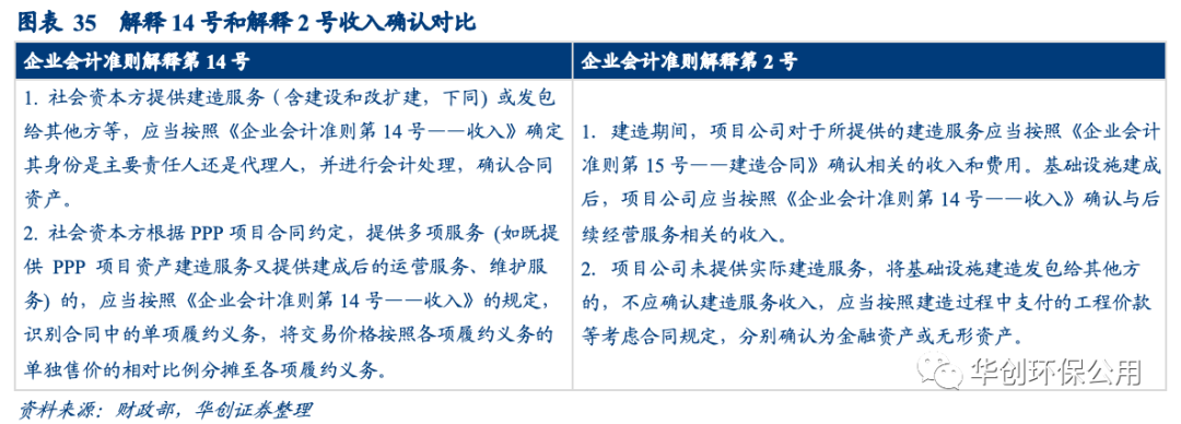 解釋14號擴大了確認建造收入的范圍。解釋2號規(guī)定對于實際提供建造服務(wù)的部分,可確認建造收入而對于未實際提供建造服務(wù)(即發(fā)包給其他方)的部分確認為金融資產(chǎn)或無形資產(chǎn);解釋14號則規(guī)定即使企業(yè)不提供實際建造服務(wù),仍然可以確認建造收入(主要責(zé)任人:按對價總額確認收入;代理人:扣除支付給其他方的金額后確認收入)。我們認為該會計準則的變更是2021年部分環(huán)保上市公司凈利潤增速低于營收增速的原因之一(多確認了毛利率較低的工程業(yè)務(wù)收入)。