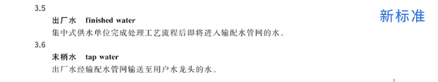 (3)新增出廠水、末梢水的定義,同時增加了末梢水消毒劑指標要求;