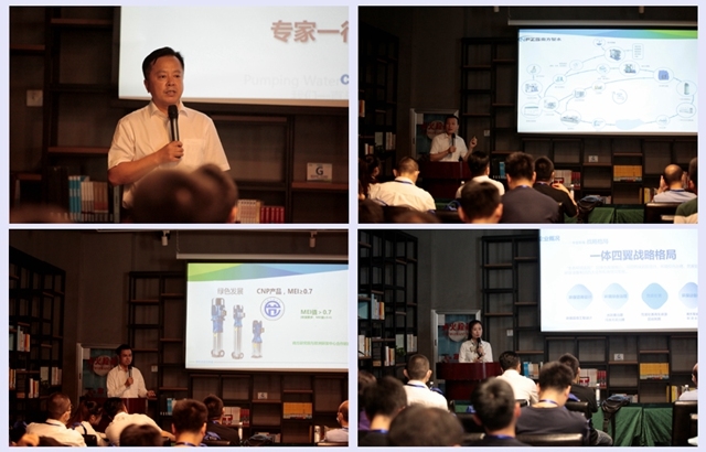 參觀環(huán)節(jié)結(jié)束后,南方泵業(yè)杭州銷售公司副總經(jīng)理金甲根金總向來訪專家領(lǐng)導(dǎo)致歡迎辭,對于本次浙江大學(xué)建筑設(shè)計研究院的考察指導(dǎo)表示感謝。隨后南方泵業(yè)分別從公司概況、建筑用泵產(chǎn)品、成套給水排水智慧化技術(shù)應(yīng)用這三個方面進行了匯報分享。專家們對于南方泵業(yè)生產(chǎn)的CDM輕型立式多級離心泵、SS高效靜音水務(wù)專用泵等應(yīng)用于建筑行業(yè)的多款高能效泵產(chǎn)品給予了高度贊賞,特別是南方智水在行業(yè)內(nèi)率先實現(xiàn)并使用了變壓控制方法,進行壓力優(yōu)化,提升設(shè)備運行效率,實現(xiàn)節(jié)能降耗目標(biāo),引起了參會嘉賓的集中關(guān)注。