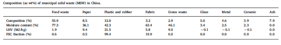 圖6.某研究中我國生活垃圾中各個組分的比例、熱值和化石源碳含量