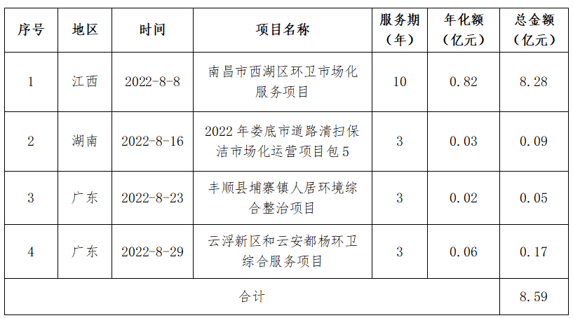 僑銀股份當月則中標4個環(huán)衛(wèi)項目,其中南昌市西湖區(qū)環(huán)衛(wèi)市場化服務(wù)項目,服務(wù)期10年,總金額達到8.28億元。