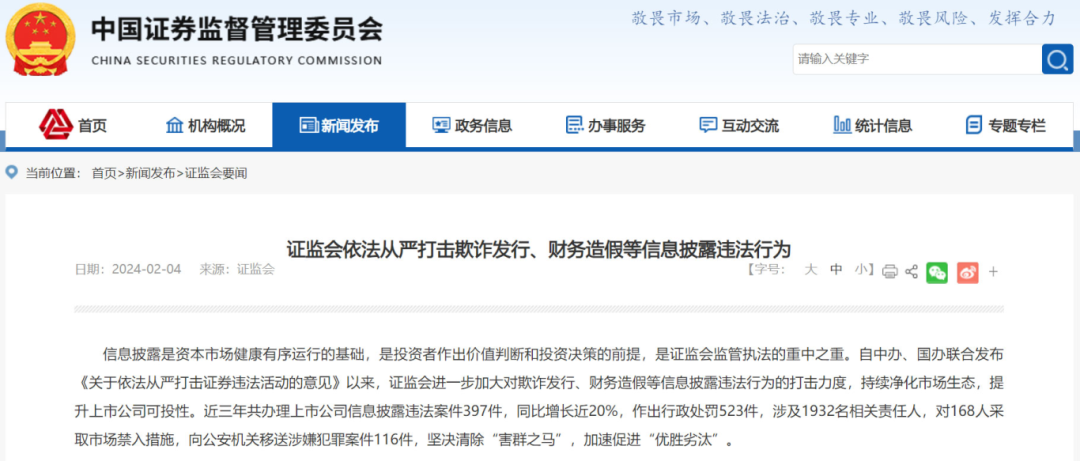 就在上個月,1月7日晚間,興源環(huán)境公告收到《行政處罰決定書》,因全資子公司存在虛增項(xiàng)目收入及成本等情況,導(dǎo)致公司財(cái)務(wù)數(shù)據(jù)存在虛假記載,興源環(huán)境及公司財(cái)務(wù)總監(jiān)分別被罰。《行政處罰決定書》顯示,興源環(huán)境的全資子公司——杭州中藝生態(tài)環(huán)境工程有限公司(下稱“中藝生態(tài)”)于2016年、2017年在長興縣美麗城鎮(zhèn)(標(biāo)段一、標(biāo)段二)PPP項(xiàng)目、溫州洞頭區(qū)本島海洋生態(tài)廊道整治修復(fù)工程PPP項(xiàng)目中存在虛增項(xiàng)目收入及成本等情況,導(dǎo)致興源環(huán)境2016年至2022年年報財(cái)務(wù)數(shù)據(jù)及相關(guān)披露存在虛假記載。浙江證監(jiān)局決定,對興源環(huán)境責(zé)令改正,給予警告,并處以200萬元罰款;對公司財(cái)務(wù)總監(jiān)孫穎給予警告,并處以80萬元罰款。事實(shí)上,興源環(huán)境接受處罰多少有點(diǎn)“冤枉”,因?yàn)?span style="margin: 0px; padding: 0px; outline: 0px; max-width: 100%; box-sizing: border-box !important; overflow-wrap: break-word !important;">此次導(dǎo)致處罰的中藝生態(tài)是興源環(huán)境收購而來的,2016年才納入合并報表,當(dāng)時雙方還簽署了業(yè)績承諾補(bǔ)償協(xié)議。這次虛增項(xiàng)目收入的事件爆發(fā)后,興源環(huán)境也表示,將高度重視業(yè)績承諾補(bǔ)償?shù)淖酚懝ぷ鳎瑪M安排專門隊(duì)伍并聘請專業(yè)機(jī)構(gòu)進(jìn)行研判,切實(shí)推動相關(guān)工作有效開展。還有此前曾被媒體曝出過“財(cái)務(wù)造假”的啟迪環(huán)境。2023年9月,湖北證監(jiān)局官網(wǎng)披露,因信息披露違法,對啟迪環(huán)境給予警告并處罰款60萬元,對時任董事長文一波等4位相關(guān)責(zé)任人給予警告并處罰款30萬元。調(diào)查顯示,啟迪環(huán)境在2017年-2018年間,通過偽造虛假分包合同及節(jié)點(diǎn)結(jié)算單確認(rèn)成本,虛構(gòu)了相關(guān)PPP項(xiàng)目(向社會資本開放的基礎(chǔ)設(shè)施建設(shè)和公共服務(wù)項(xiàng)目)合同完工百分比,提前確認(rèn)或虛假確認(rèn)總包合同收入,導(dǎo)致啟迪環(huán)境2017、2018年年報中主營業(yè)務(wù)收入、主營業(yè)務(wù)成本等項(xiàng)目存在虛假記載。2023年7月,龍凈環(huán)保收到中國證監(jiān)會福建監(jiān)管局的行政處罰決定書,認(rèn)定ST龍凈未按規(guī)定披露關(guān)聯(lián)交易,決定對公司給予警告,并處以一百萬元罰款。還有幾位相關(guān)責(zé)任人分別給予了警告和數(shù)額不等的罰款。再往前一個月,2023年6月,美尚生態(tài)也曾收到中國證監(jiān)會的行政處罰決定書,認(rèn)定美尚生態(tài)2015年公司招股說明書、2015年至2019年年報、2020年半年報、2016年非公開發(fā)行股份及支付現(xiàn)金購買資產(chǎn)并募集配套資金暨關(guān)聯(lián)交易報告書、2017年面向合格投資者公開發(fā)行公司債券募集說明書等信息披露文件存在虛假記載,決定對其責(zé)令改正,給予警告,并處以1330萬元罰款。更早以前,卓錦股份于2023年5月,*ST科林于2023年2月,也曾分別收到過證監(jiān)部門的處罰決定書,責(zé)令改正,給予警告,并處以一定數(shù)額的罰款。*ST科林的兩位相關(guān)當(dāng)事人杜簡丞、李根旺還被分別采取了3年證券市場禁入措施。證監(jiān)會嚴(yán)打財(cái)務(wù)造假