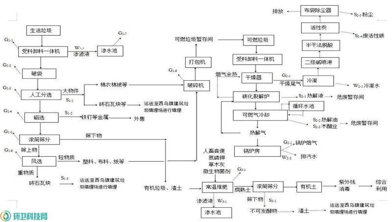 環(huán)境局網(wǎng)站上的公開資料顯示,這座生活垃圾處理項目位于西烏珠穆沁旗巴拉嘎爾高勒鎮(zhèn)西南側(cè)5.5km處,原計劃采用熱解工藝,主要建設(shè)一座“生活垃圾資源化處理廠及其附屬設(shè)施工程,購置生活垃圾處理設(shè)備”,建成后可日處理生活垃圾200噸,主要產(chǎn)品為碳化裂解爐熱解產(chǎn)生的熱解氣467.2萬m3/a和生活垃圾有機土(常溫)32850t/a。項目總投資6860萬元,資金來源為地方債券和上級專項資金。其中,環(huán)保投資398萬元,占總投資的5.80%。計劃于2020年8月開建,2021年12月投產(chǎn)。但至今,項目也只是進行了場地平整,尚未建設(shè)投產(chǎn)。關(guān)于變更生活垃圾處理工藝的原因,環(huán)評文件表示,這是根據(jù)“EPC承包單位多年運行經(jīng)驗及項目區(qū)域生活垃圾成分復雜、水分含量高等特點,高溫熱解工藝尚無法有效處理當?shù)厣罾?,主要體現(xiàn)在熱解爐運行不穩(wěn)定、排渣不順暢、產(chǎn)生的可燃氣體成分復雜、難以有效利用”。因此,建設(shè)單位根據(jù)需求及同類型企業(yè)實際生產(chǎn)情況,擬將原有生活垃圾熱解工藝變更為生活垃圾焚燒工藝并配套汽輪發(fā)電機組。變更后,項目將配置1臺200t/d機械爐排爐+1臺14t/h中溫低壓(400℃,2.5MPa)余熱鍋爐+1臺額定1.2MW的凝汽式汽輪機+1臺1.2MW發(fā)電機,年運行時間8000小時,年平均發(fā)電量960×10^4kWh/a,所發(fā)電量全部用于廠內(nèi)自用。項目總投資仍為6860萬元,但環(huán)保投資增至872.05萬元,占總投資的12.71%。從2020年至今,時隔4年依舊未動工,最終卻由EPC承包單位指出工藝不可行,那這個胎死腹中的“高溫熱解”項目究竟是一個什么樣的處理流程呢?環(huán)評文件顯示,變更之前,項目生活垃圾綜合利用處理系統(tǒng)由生活垃圾收運系統(tǒng)、生活垃圾分選系統(tǒng)、可燃垃圾熱解系統(tǒng)和有機質(zhì)堆肥發(fā)酵系統(tǒng)四部分組成。其中的垃圾收運、垃圾分選和垃圾堆肥基本沒什么好說,我們忽略,重點看垃圾熱解這個核心工藝。環(huán)評報告顯示,項目原計劃配置一臺碳化裂解爐,該碳化裂解爐可實現(xiàn)對含水量不超過30%、規(guī)格在50-100mm之間的物料進行熱解氣化。生活垃圾碳化裂解系統(tǒng)主要包括:干燥脫水系統(tǒng)、碳化裂解系統(tǒng)、出料系統(tǒng)、熱解氣凈化和管網(wǎng)系統(tǒng),其中干燥脫水系統(tǒng)包括:干燥器上料機、干燥器、干物料儲倉等;碳化裂解系統(tǒng)包括:提斗式上料機、爐頂儲倉、密封裝置、螺旋進料裝置、高溫密封裝置、反應(yīng)釜、爐體加熱裝置、爐內(nèi)攪拌裝置、攪拌高溫密封裝置、攪拌動力裝置、爐內(nèi)余熱回收裝置等;出料系統(tǒng)包括:出料螺旋裝置、出料高溫密封裝置、熱解渣集中出料裝置、熱解氣出氣裝置等;熱解氣凈化和管網(wǎng)系統(tǒng)包括:熱解氣除塵裝置、熱解氣冷卻裝置、真空裝置、水氣分離裝置、木醋液與裂解油分離裝置等。根據(jù)廠家前期測試數(shù)據(jù),一噸可燃垃圾可產(chǎn)氣200m3,產(chǎn)渣30kg,產(chǎn)木醋液40kg,產(chǎn)焦油2kg,垃圾熱解率為3%。本裝置將物料一次性或連續(xù)性加入反應(yīng)釜內(nèi)進行熱解氣化,生成可燃氣體為混合氣體,主要含有一氧化碳、氫氣、甲烷等。在反應(yīng)釜內(nèi)由上向下通過羅茨鼓風機將氣體輸送至管網(wǎng)。鑒于生物質(zhì)氣所含的主要雜質(zhì)是焦油和灰塵,本項目采用“旋風除塵器”、“熱交換器”、“氣液分離器”等對熱解氣進行凈化處理,除掉灰塵和焦油等物質(zhì)。基本生產(chǎn)流程是:可燃垃圾→干燥脫水→碳化裂解→旋風除塵→冷卻→氣液分離→阻火→管網(wǎng)→阻火→供氣。熱解產(chǎn)生的熱解氣中約1/3直接用作碳化裂解爐作燃料,剩余約2/3通過地下輸配系統(tǒng)輸送到各用氣設(shè)備,多余燃氣進入火炬燃燒系統(tǒng)。自從2022年12月,國家發(fā)改委、住建部、生態(tài)環(huán)境部等五部委聯(lián)合印發(fā)《關(guān)于加強縣級地區(qū)生活垃圾焚燒處理設(shè)施建設(shè)的指導意見》,明確要求“以中西部和東北地區(qū)、邊境地區(qū)為重點,選取人口密度較低、垃圾產(chǎn)生量較少的部分縣級地區(qū)積極開展小型焚燒試點”之后,國內(nèi)一度出現(xiàn)一股使用熱解工藝的“小型垃圾焚燒項目”,但對此工藝的爭議卻一直頗多,焦點就在于熱解到底是否適于處理生活垃圾?熱解,作為一個誕生于19世紀的技術(shù),最初是用于煤化工,缺乏油氣資源的德國人采用熱解工藝處理煤炭,獲取燃油、燃氣等產(chǎn)品。后來,人們在處理廢舊塑料、廢輪胎等橡膠制品、醫(yī)療廢物及農(nóng)林生物質(zhì)等固廢時,也采用了熱解技術(shù),效果良好。于是又試圖將熱解技術(shù)引入生活垃圾處理領(lǐng)域,但卻遇到了麻煩,因為“生活垃圾”這個特殊物料遠沒有煤、廢塑料、橡膠那么“單純”。一是生活垃圾含水率高,水分蒸發(fā)會大量吸收熱能,失溫會導致熱解過程難以為繼;二是生活垃圾成分復雜,即使是高質(zhì)量的城市生活垃圾中也包含不少不可燃物,如金屬、玻璃、塵土等,熱解要處理的往往又是不可燃物成分更高的農(nóng)村生活垃圾,產(chǎn)灰量大,熱解處理效率低;三是垃圾熱解項目規(guī)模小,爐體微小,熱量容易散失,會加劇失溫,導致工況不穩(wěn)定。這三大問題導