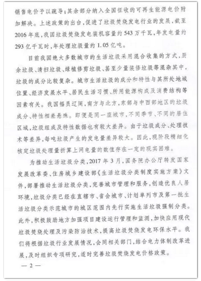 發(fā)改委答復(fù)《關(guān)于適度提高垃圾焚燒折算電量的提案》