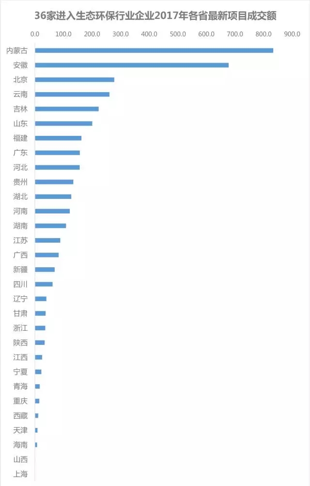 (備注:2017年上述36家企業(yè)在黑龍江省沒有項(xiàng)目成交額,未在圖中標(biāo)注)