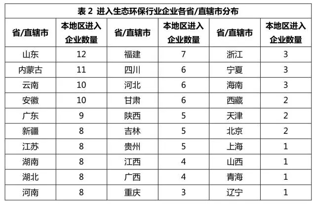 從各省生態(tài)環(huán)保細(xì)分領(lǐng)域優(yōu)勢(shì)企業(yè)分布來看,山東省所涉足的環(huán)保細(xì)分領(lǐng)域是最全的,各細(xì)分領(lǐng)域中的佼佼者也較為多樣,并無單個(gè)企業(yè)獨(dú)占鰲頭的現(xiàn)象,說明山東省生態(tài)環(huán)保行業(yè)的競(jìng)爭(zhēng)性和機(jī)會(huì)都較大。
