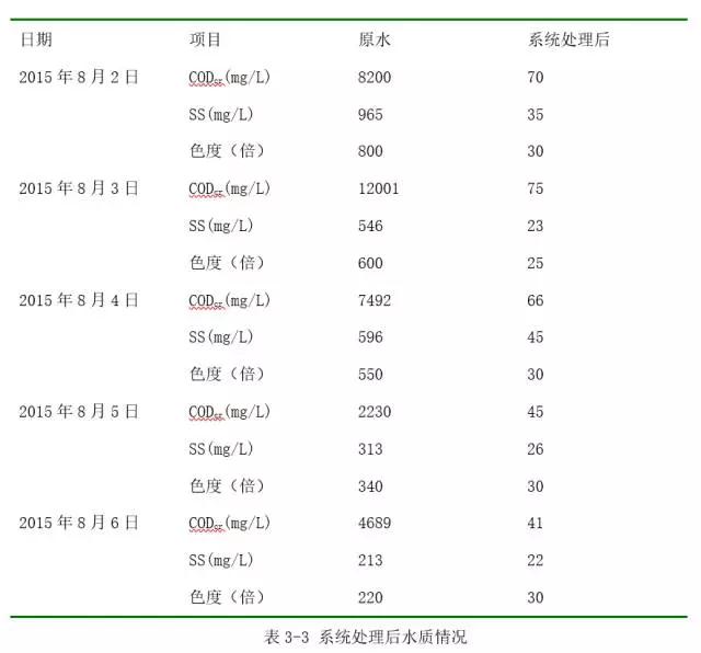 系統(tǒng)運(yùn)行水質(zhì)情況如下表。