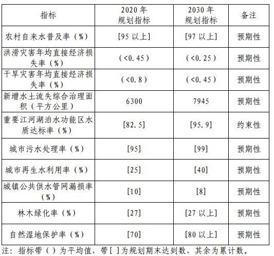 ——水生態(tài)環(huán)境保護(hù)。正常年份非汛期河道生態(tài)水面達(dá)到 5000 平方公里;重要江河湖泊水功能區(qū)水質(zhì)達(dá)標(biāo)率提高到 82.5%,省控重點(diǎn)河流水質(zhì)基本達(dá)到水環(huán)境功能區(qū)劃要求,重點(diǎn)流域水質(zhì)優(yōu)良(達(dá)到或優(yōu)于 III 類(lèi))比例總體達(dá)到 60%以上;地級(jí)及以上城市建成區(qū)黑臭水體控制在 10%以內(nèi);新增水土流失綜合治理面積 6300 平方公里;現(xiàn)狀淺層地下水、深層承壓水超采量分別壓減 100%、50%;林木綠化率達(dá)到 27%,自然濕地保護(hù)率達(dá)到 70%。