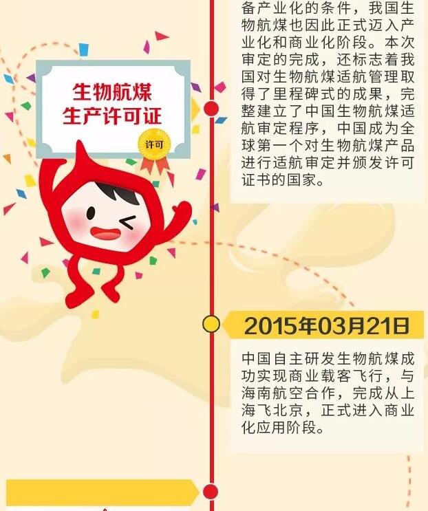 2014年2月12日,中國民用航空局正式向中國石化頒發(fā)1號生物航煤技術(shù)標(biāo)準規(guī)定項目批準書,可投入商業(yè)化應(yīng)用。