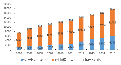 由于焚燒廠用地面積只占到垃圾衛(wèi)生填埋場(chǎng)的二十分之一,甚至更少,同時(shí),垃圾焚燒能以最快速度實(shí)現(xiàn)垃圾無害化、穩(wěn)定化、減量化、資源化的最終處理目標(biāo)。所以,在人口密集、經(jīng)濟(jì)發(fā)達(dá)、土地資源稀缺的大中城市的發(fā)展背景和需求下,垃圾焚燒處置實(shí)現(xiàn)了快速增長(zhǎng)。