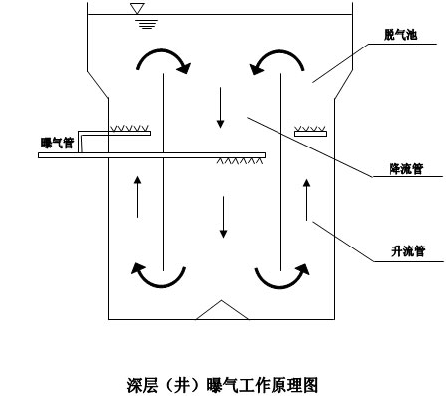 由于是在一個很深的液層內(nèi)曝氣充氧,它的運轉(zhuǎn)方式和流體力學(xué)特性與傳統(tǒng)(淺層曝氣)方法有很大差異。