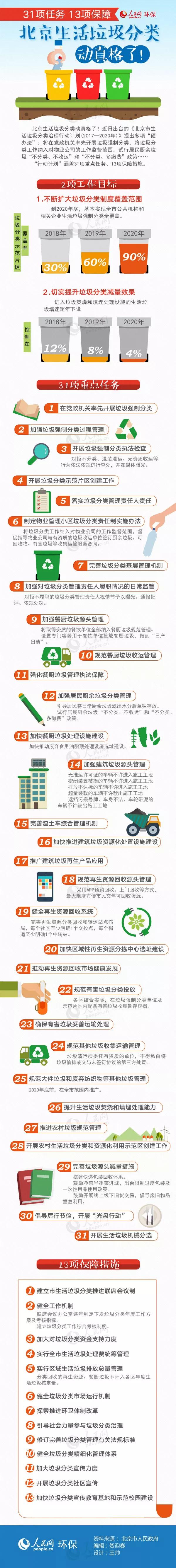 北京市人民政府辦公廳于2017年11月發(fā)布了《北京市生活垃圾分類治理行動(dòng)計(jì)劃》(2017—2020年),其中的31項(xiàng)任務(wù)、13項(xiàng)保障,圖解如下: