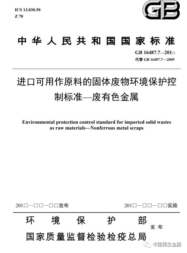 本標(biāo)準(zhǔn)是進(jìn)口固體廢物環(huán)境保護(hù)系列控制標(biāo)準(zhǔn)之一,適用于進(jìn)口可用作原料的固體廢物目錄中有關(guān)廢有色金屬的進(jìn)口管理。