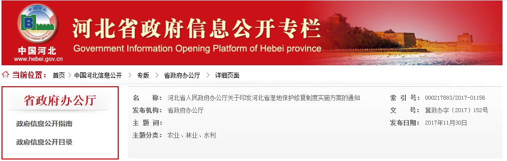 日前,河北省政府印發(fā)《河北省濕地保護(hù)修復(fù)制度實(shí)施方案》。全文如下: