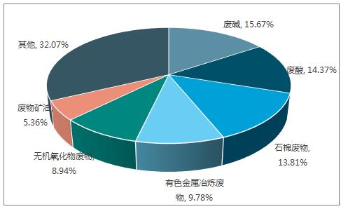 廢酸堿、石棉廢物產(chǎn)生量排名靠前(2015)
