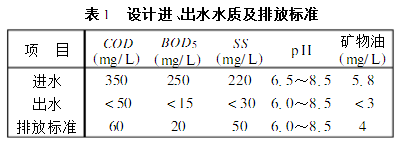 北京航天城污水處理廠是為北京航天工程服務的,根據(jù)北京航天工程環(huán)境評價報告書所列數(shù)據(jù),污水處理廠隨航天工程的發(fā)展分二期建設,設計處理能力為7200m3/d,一期工程污水量為3600m3/d,主要包括工業(yè)廢水、生活污水和門診部污水,各自所占比例為1810%、8115%、015%,因此其污水主要是生活污水,污染物包括有機物、懸浮物和油類等。設計進、出水水質(zhì)及排放標準(北京市水污染物排放二級標準)見表1。