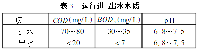 從每天監(jiān)測的水質(zhì)情況看,CASS工藝經(jīng)過上述各階段的調(diào)試和試運行,取得了良好效果。運行能耗合計0127元/(m3?d),實際運行進、出水水質(zhì)如表3所示。