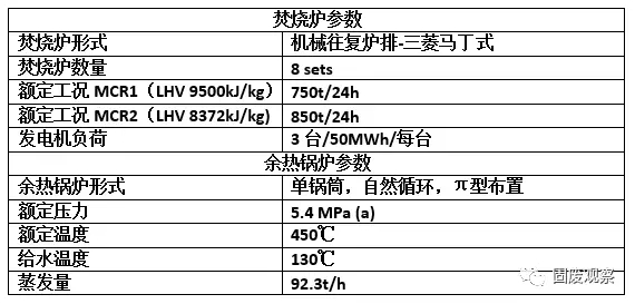 項(xiàng)目一期工程由3x150t/d的逆向推飼馬丁式垃圾焚燒設(shè)備為核心組成三條垃圾焚燒處理生產(chǎn)線,配置7.5MW凝氣式汽輪發(fā)電機(jī)組。煙氣處理采用了循環(huán)流化反應(yīng)+活性炭噴射+布袋除塵+尾氣在線監(jiān)測(cè)的半干式循環(huán)流化煙氣處理裝置。