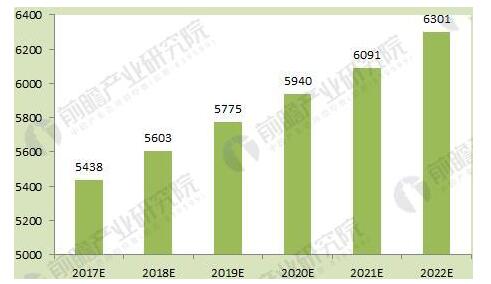 圖表4:2017-2022年廢紙回收利用規(guī)模預測(單位:萬噸)