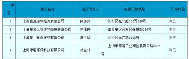 (危險廢物經(jīng)營許可證名單部分截圖)