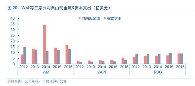 從自由現(xiàn)金流角度看,由于環(huán)衛(wèi)龍頭公司擁有較強(qiáng)定價能以及美國環(huán)衛(wèi)行業(yè)已經(jīng)走過資本支出高峰,目前美國環(huán)衛(wèi)龍頭公司的現(xiàn)金流創(chuàng)造能力極強(qiáng),造血能力突出。三家環(huán)衛(wèi)龍頭的自由現(xiàn)金流全部為正且規(guī)模龐大,有大量現(xiàn)金可以向股東分紅,高股息率;此外,三家公司的自由現(xiàn)金流基本能覆蓋下一年的資本支出,在擴(kuò)張及外延并購時基本不依賴外部融資。