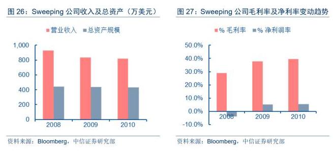 專注于清掃業(yè)務(wù)的SweepingCorporationofAmerica服務(wù)范圍包括美國八個州,業(yè)務(wù)涵蓋市郡街道清掃、國道和州際清掃、道路施工清掃、工業(yè)&制造設(shè)施清掃、商業(yè)和住宅清掃等領(lǐng)域,每個月清掃里程約25,000英里,客戶名單包括國家交通運(yùn)輸部門、市郡公共工程部門、大型工業(yè)設(shè)施公司和建筑公司等。截至2010年,公司總資產(chǎn)僅為430萬美元,2008~2010年的收入分別為930、830、820萬美元,毛利分別為270、310、320萬美元,與2016年收入高達(dá)136億美元的固廢處理龍頭公司W(wǎng)asteManagement相比,體量明顯不在一個數(shù)量級,美國垃圾清掃市場規(guī)模明顯較小。
