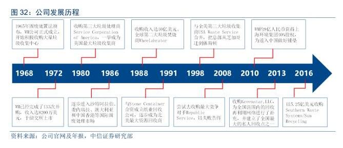 上市之后,公司持續(xù)開啟一系列收購,僅在在上市后一年半內(nèi)就完成75起并購。1998年,公司與全美第三大垃圾收集企業(yè)USAWasteService合并,2008年公司出價62億美金欲收購全美第二大固廢處理企業(yè)RepublicService,但最終沒有獲得成功。在立足美國的基礎(chǔ)上,WM也在1975~1989年逐步進(jìn)入沙特阿拉伯、阿根廷、澳大利亞、委內(nèi)瑞拉和中國香港等地區(qū),從事市政垃圾處理。1984年公司收購ServicesCorporationofAmercia,收入規(guī)模從10億美元增加到12億美元,一舉成為美國最大固廢處理公司。