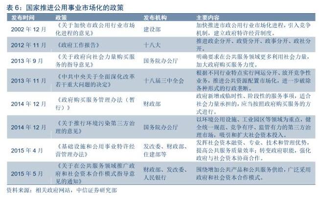 近年來,國家出臺一系列相關(guān)政策,構(gòu)建公用事業(yè)市場化框架。一是推進(jìn)政企分開、政事分開,簡政放權(quán);二是加快推進(jìn)市政公用事業(yè)的市場化進(jìn)程,引入競爭機(jī)制,推廣政府和社會資本合作模式,由政府授權(quán)特許經(jīng)營,加大政府購買服務(wù)力度。在此基礎(chǔ)上,各個地方也出臺多項在公用事業(yè)領(lǐng)域引進(jìn)社會資本投資的政策,要求當(dāng)?shù)丨h(huán)衛(wèi)監(jiān)管部門從“管干一體”轉(zhuǎn)型為專業(yè)監(jiān)督管理組織,將環(huán)衛(wèi)服務(wù)項目向社會公開招投標(biāo),進(jìn)行市場化運(yùn)作,在服從管理機(jī)構(gòu)調(diào)度的前提下,自負(fù)盈虧。這一系列舉措核心是避免政府成為單一投資主體,實行政府和社會資本的合作模式,使得環(huán)衛(wèi)服務(wù)業(yè)走向市場化之路。