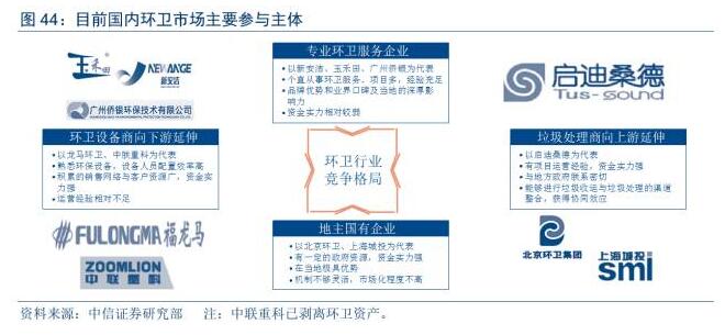區(qū)域性國企公司:政府資源密切,主要依托當(dāng)?shù)卣P(guān)系開展業(yè)務(wù),在當(dāng)?shù)丨h(huán)衛(wèi)市場中占據(jù)主導(dǎo)地位,但市場化程度、管理效率和跨區(qū)域運(yùn)營能力等方面能力偏弱。不過,部分在機(jī)制及活力等方面表現(xiàn)突出的區(qū)域性國企未來進(jìn)一步成長潛力也比較充沛,以北京市國資委下屬的北京環(huán)衛(wèi)等為典型代表。