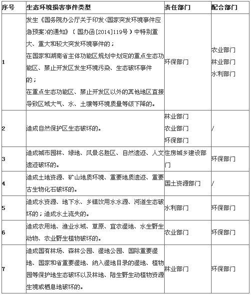 2、市州生態(tài)環(huán)境保護行政主管部門負責(zé)受理本行政區(qū)域內(nèi)除省級生態(tài)環(huán)境保護行政主管部門受理以外的下列生態(tài)環(huán)境損害事件: