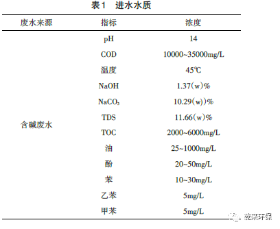 某煤制烯烴項目含堿廢水流量3m3/h。進(jìn)、出水指標(biāo)見表1。
