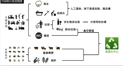 鄉(xiāng)村生活性污染物主要是人體排泄物(糞尿),清洗水,洗漱水與垃圾;生產(chǎn)性污染物主要是畜禽糞便和秸稈。