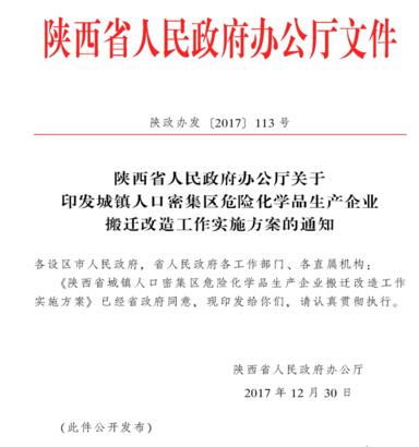 陜西省城鎮(zhèn)人口密集區(qū)危險化學品生產企業(yè)搬遷改造工作實施方案