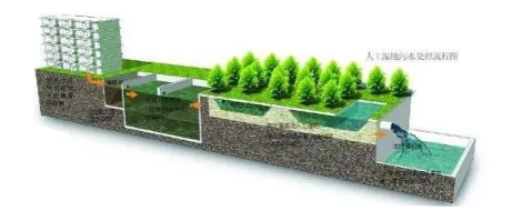 人工濕地的一般工藝流程包括預(yù)處理、水生植物池和集水排水3大部分。