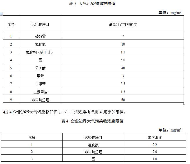 4.2.4企業(yè)邊界大氣污染物任何1小時(shí)平均濃度執(zhí)行表4規(guī)定的限值。