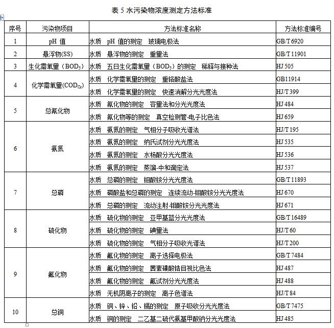 5.2.2對(duì)企業(yè)排放水污染物濃度的測(cè)定采用表5所列的方法標(biāo)準(zhǔn)。